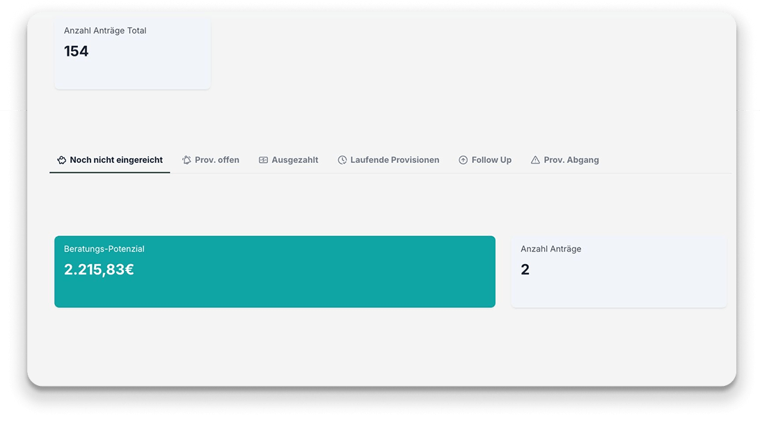 Behalte Verträge, Status und Provisionsfortschritte klar im Blick – strukturiert transparenz und auf deine Ziele ausgerichtet